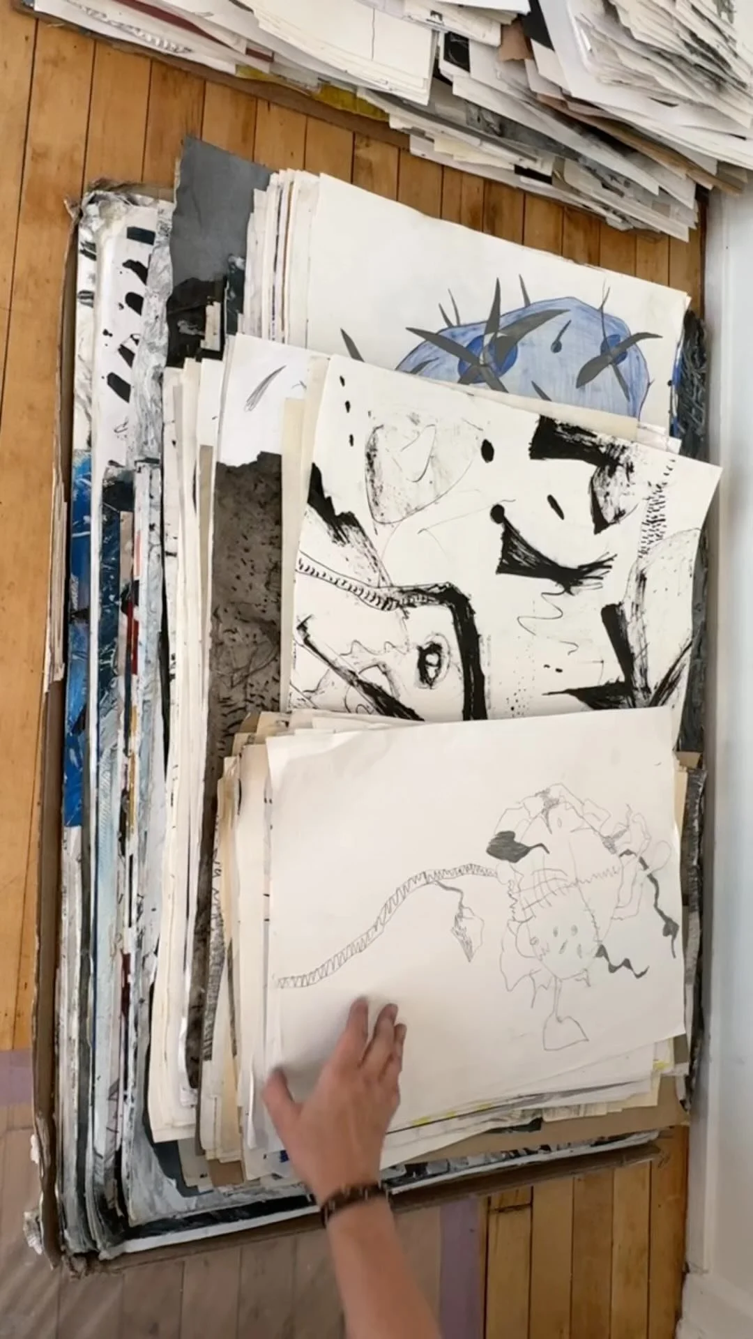 The weight of the drawings/paper corresponds to body weight.