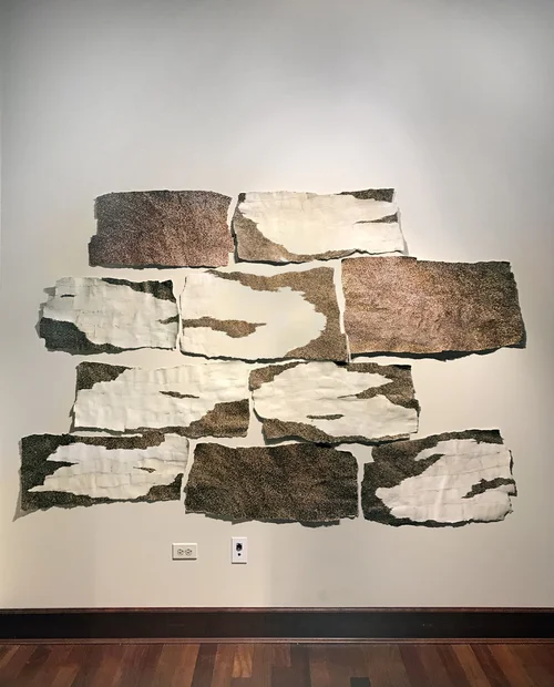 Process: The number of incised lines into the wall on the right-side shape equals number of days I have been alive, and the left-side shape, the number of nights. The height of the shapes matches personal height. Every day we leave physical trace that materializes us into who we are.